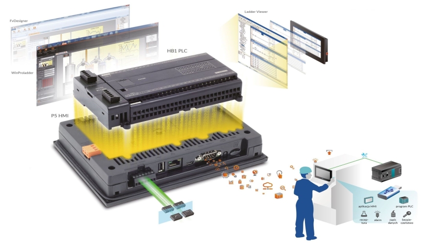 TechnologieZintegrowane rozwiązanie FATEK HMI i PLC Sprzęt charakteryzuje duża odporność na zakłócenia. Wewnętrzna komunikacja została zoptymalizowana i umożliwia uzyskiwanie wysokich prędkości. Liczne użyteczne wbudowane funkcje pomagają w utrzymaniu ruchu w szybki i wygodny sposób. Import tagów z projektów WinProladder Użytkownicy mogą importować tagi z projektów WinProladder podczas opracowywania projektów HMI. Dzięki temu unika się powtarzalnego przepisywania informacji